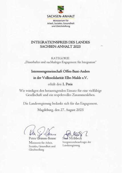 Verwendungszweck : offen - bunt - anders (wichtig !!!!)
