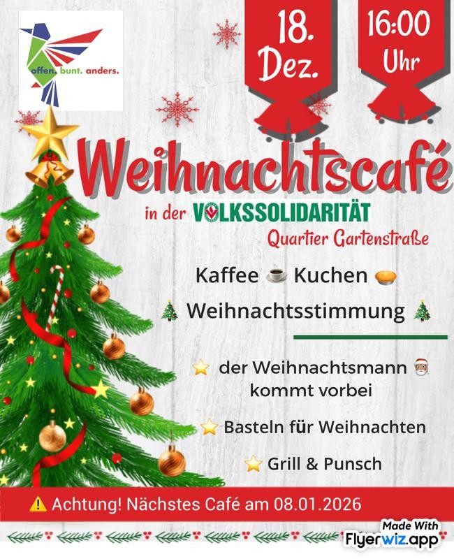 Jeden Donnerstag treffen wir uns 18.00 Uhr im Gebäude der Volkssolidarität in GHC. Jeder !!! ist eingeladen zu köstlichem Kuchen (Dank "Mutti" Sylvia), Kaffee, Tee und anderen Leckereien. Wir, zusammen mit Männern, Frauen und Kindern aus bis zu 7 Nationen, hocken zusammen, quatschen, spielen lernen .... und lassen "Gott nen lieben Mann" sein. Es ist immer wieder bewegend, lustig, kurzweilig,interessant und schreit nach Wiederholung. Kommt vorbei !!! Wir freuen uns !!! Und - ihr werdet wieder kommen.